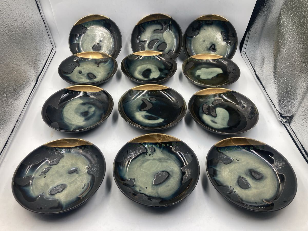 - 今回限り 12枚 希少な高取焼きの金塗りの天目皿 天目皿 日本料理 懐石料理 刺身皿 焼物皿 先付け 今回限り最後の在庫