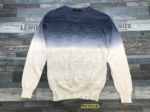- AZUL by moussy アズールバイマウジー メンズ Vネック グラデーション ニットカットソー S 青白