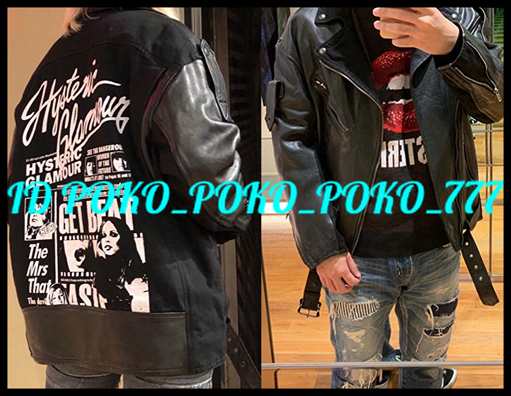 > 定価11万円程 ヒステリックグラマー USED加工 レザー × デニム ガールプリント オーバーサイズ ライダース ジャケット