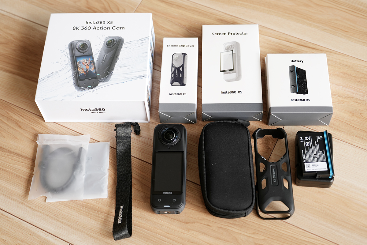 > Insta360 X5 ブラック 純正バッテリー サーモグリップカバー ストラップ スクリーンプロテクター