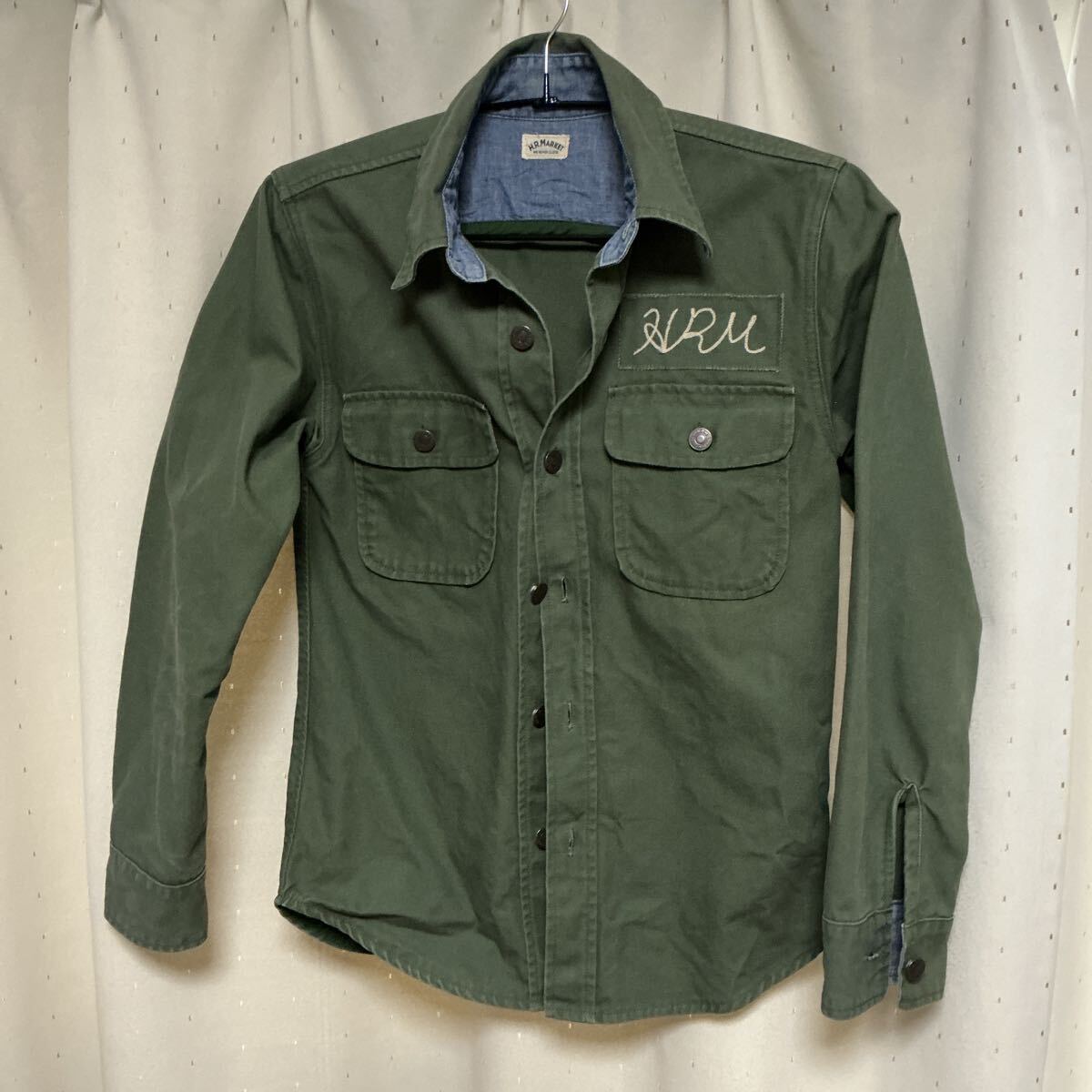 - H.R.MARKET HRM ハリウッドランチマーケット blue blue Japan ワークシャツ 長袖 size1 S 古着 日本製 made in Japan 刺繍