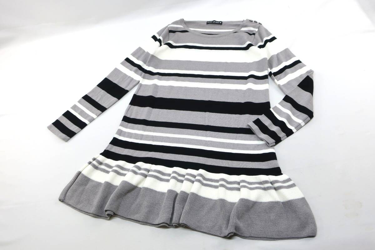 - 【送900円】1442 MARY QUANT マリークワント ボーダーニットチュニック ミニワンピース フリル セーター グレー 綿×アクリル M(38)