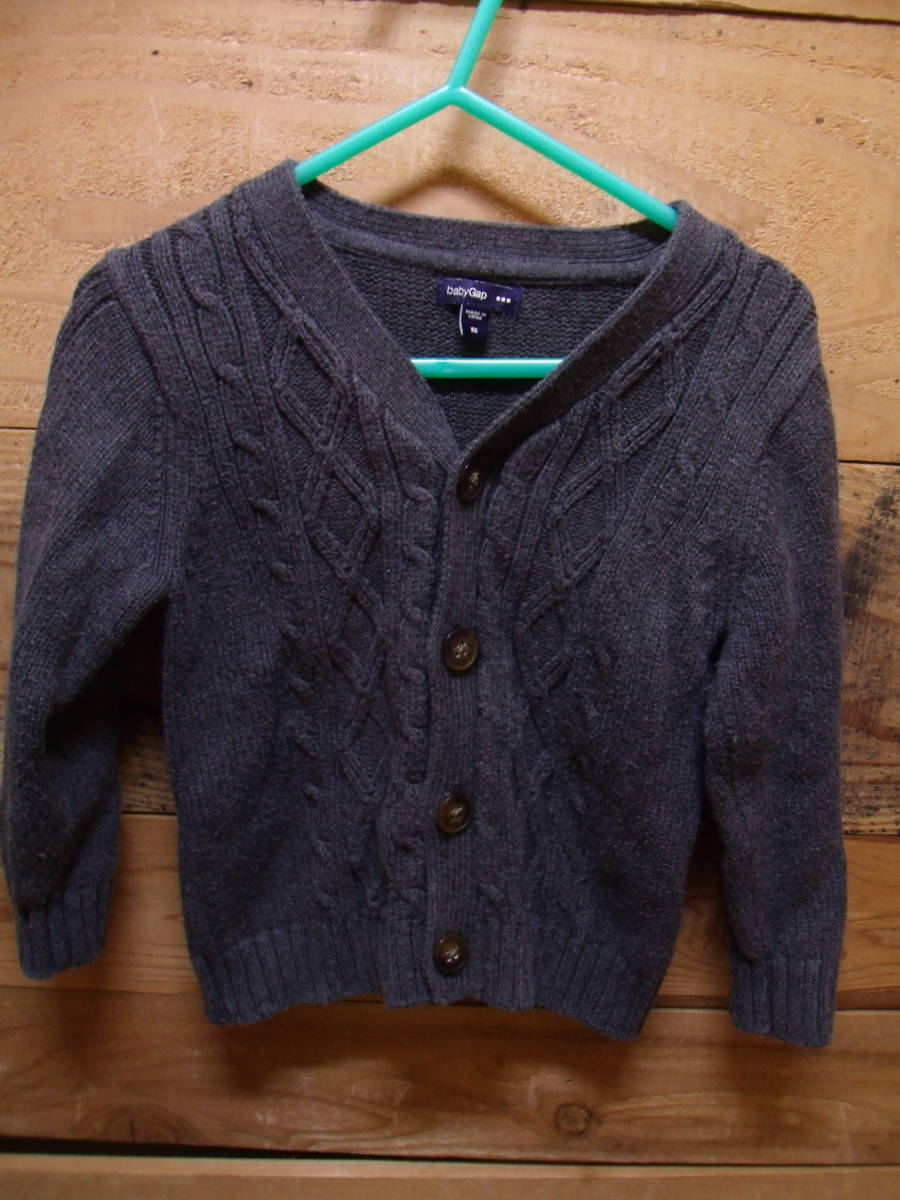 - 全国送料無料 ベビーギャップ baby GAP 子供キッズベビー男&女の子綿100%素材縄編みチャコールグレーニットカーディガン 90