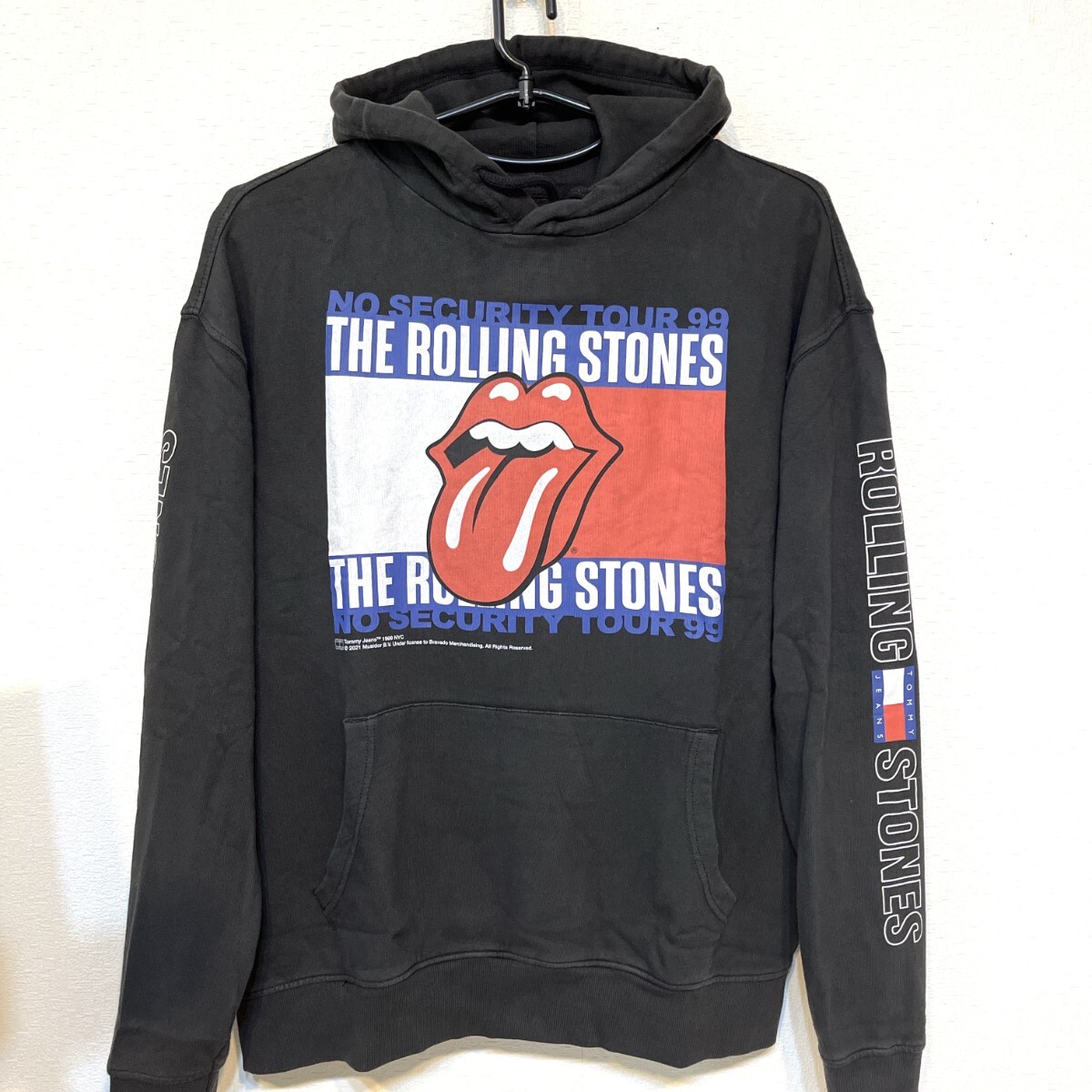 - 激レア コラボ ローリングストーンズ 1999 パーカー トミー ヒルフィガー ブラック 黒 ダメージ加工 スウェット 長袖 新品 ブランド 復刻版