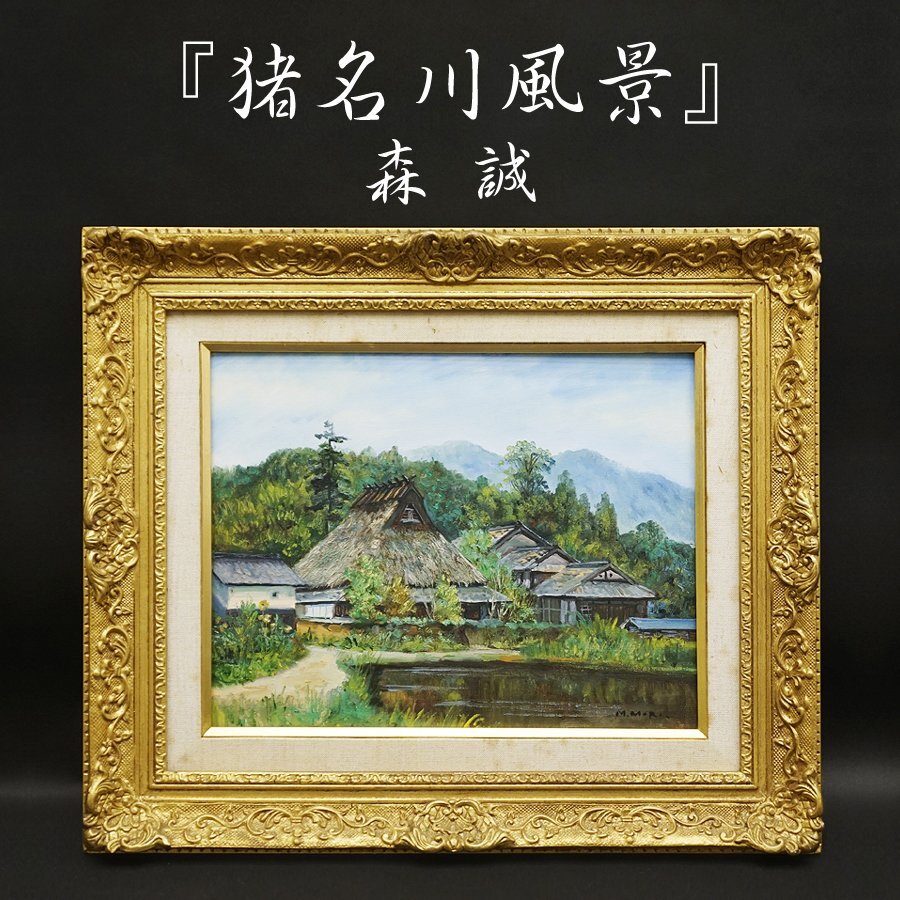 > 森誠『猪名川風景』6号 油彩 油絵 原画 直筆 風景画 絵画 額装 美術 芸術 アート 裏書サイン有 古美術品 真作保証品