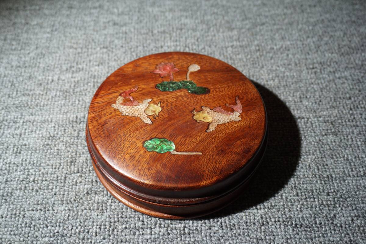 - 蔵友旧蔵出 花梨木製 細密彫 貝殼嵌 連年有餘紋 首飾盒 文房具 供養品 置物擺件 稀少珍藏品 古賞物 中国古玩 中国古美術品