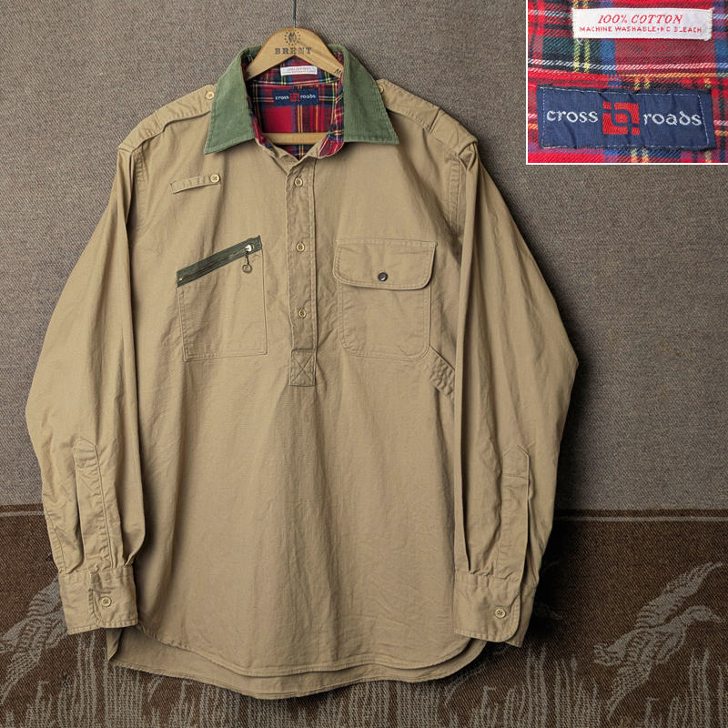 > プルオーバー【cross roads】 60年代 フィッシング サファリ シャツ L ツイル コーデュロイ ハンティング ジャケット ビンテージ 50s60s70s