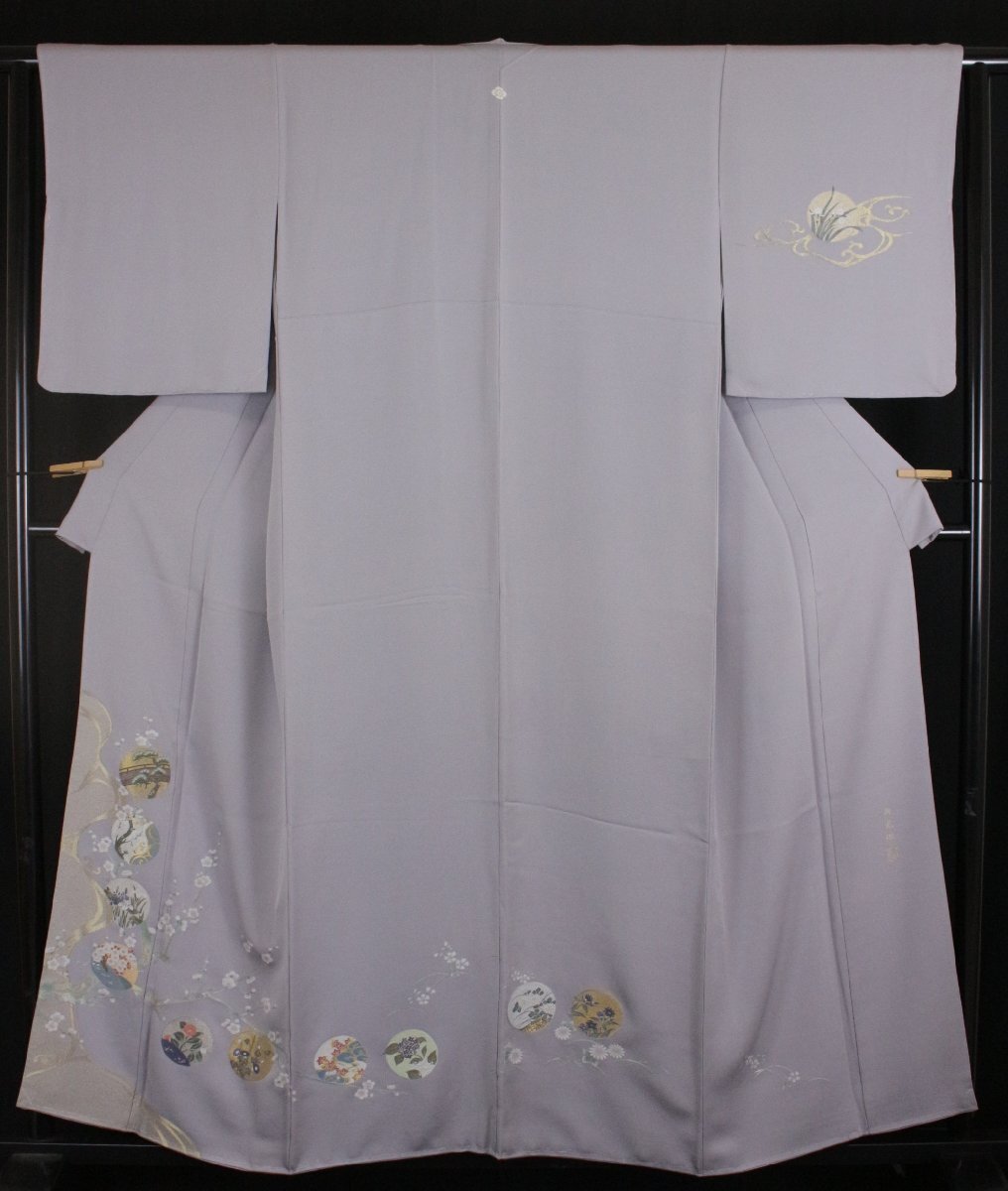 - *美品*【寿光織】正絹 一つ紋 附下訪問着 金糸波に丸文《パールトーン加工済》裄:63cm e-2499