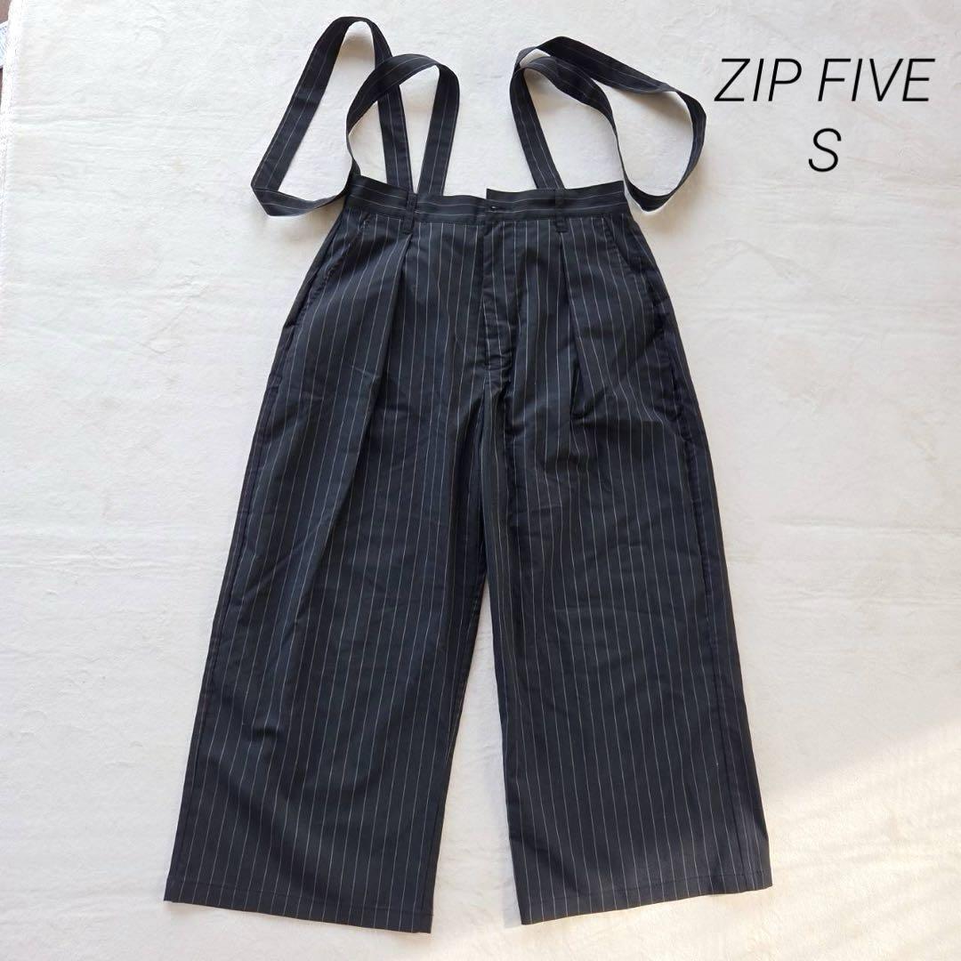 - 美品ZIP FIVE サスペンダー付きパンツ S-M ストライプ 黒 グレー