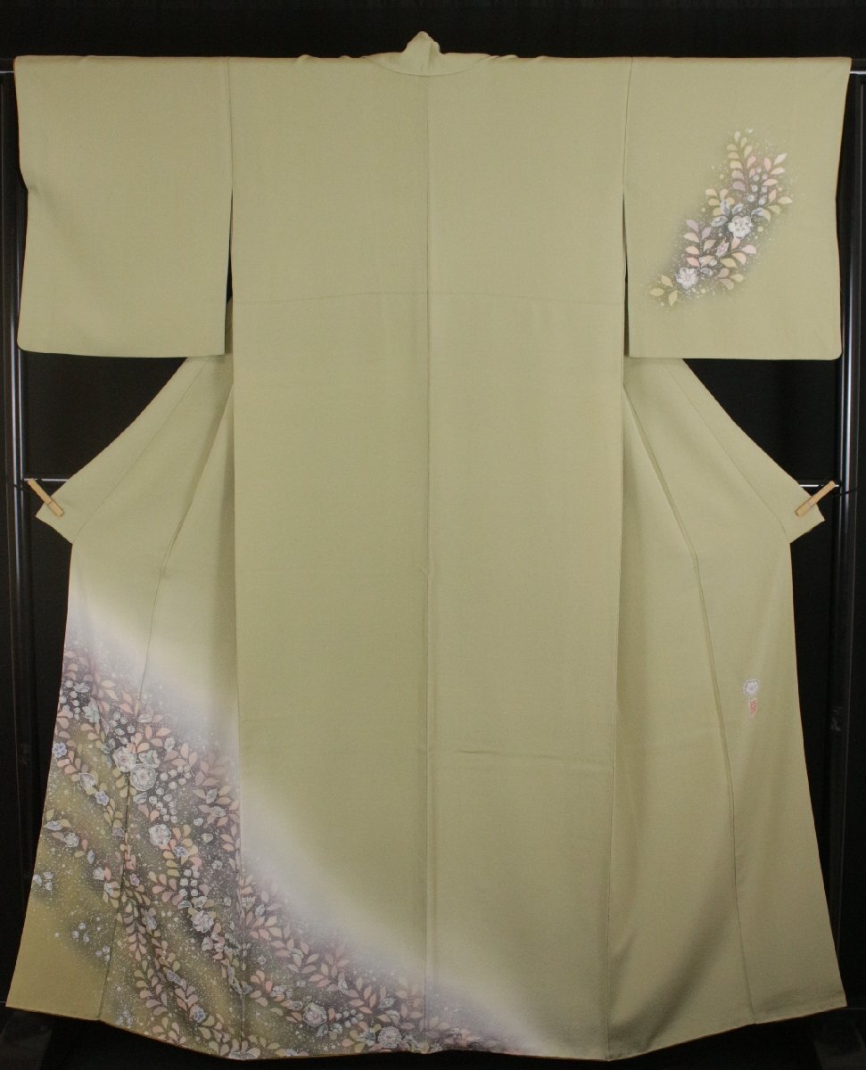 > 【桐屋 翠山工房】正絹訪問着 裾文様 辻が花文様 やまと誂製 裄:65.5cm e-2534