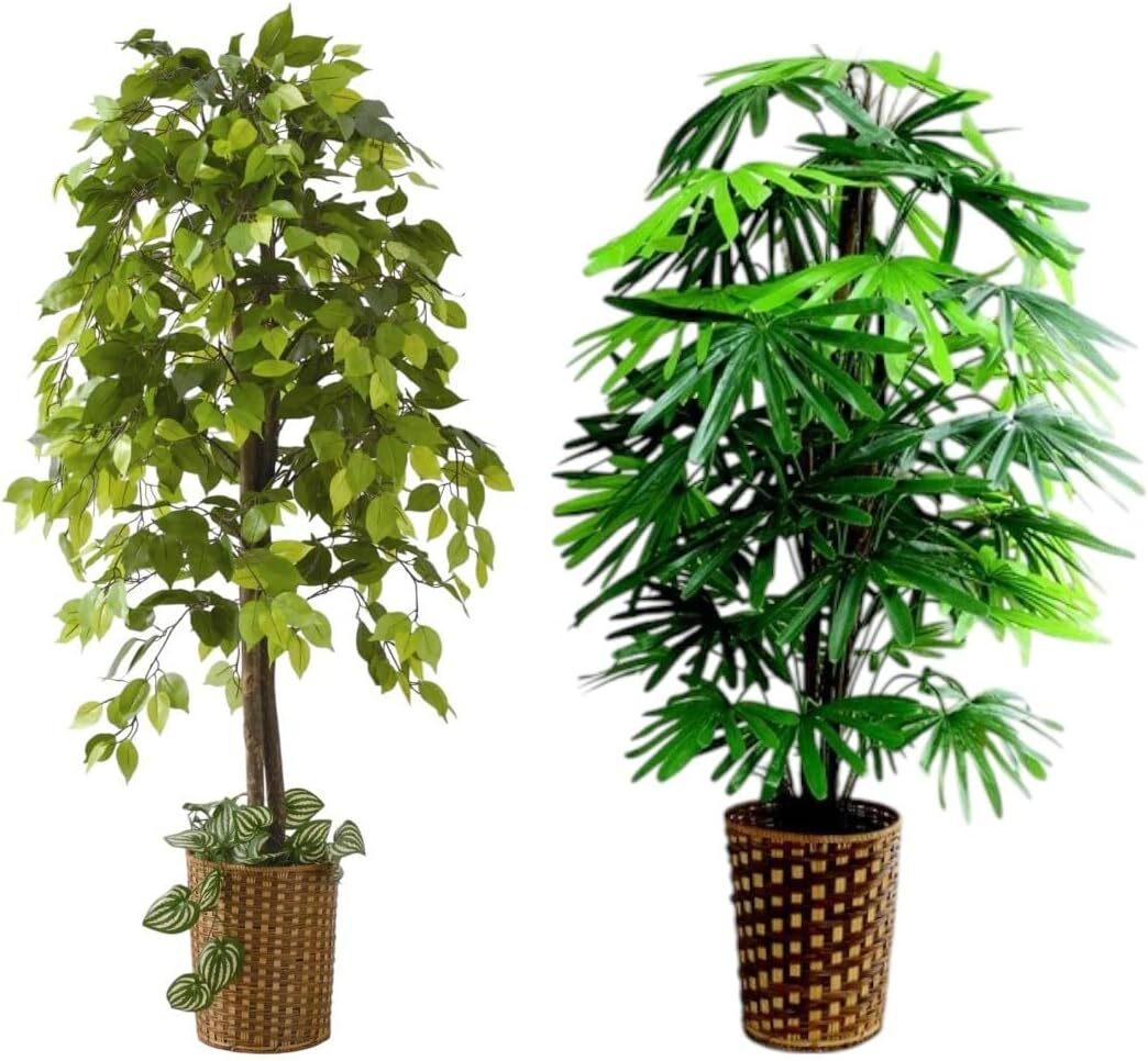 - ベンジャミン 観音竹 ベンジャミン:直径幅70×高さ160cm/観音竹:直径幅60×高さ100cm 人工観葉植物2本セット