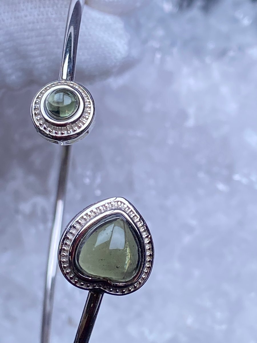 - 即決 008 極美品★【モルダバイト】★925銀 腕輪フリーサイズ 3.8-7.8x8mm(新品)