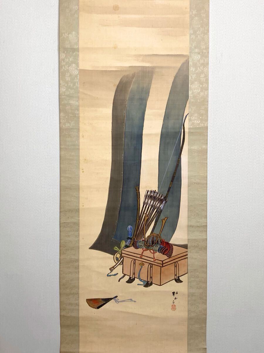 - 《魚亀》【模写】桂石「兜」絹本 端午の節句 鎧兜 日本画 茶掛 茶道具 古美術 掛軸 掛け軸 中国 人が書いたもの