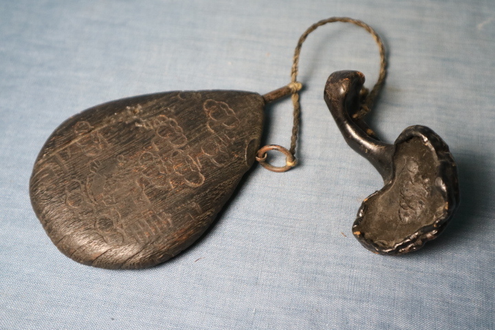 - 提げ物 火薬入 陰刻文 根付 霊芝 検武具マタギ古道具古民具珍品希少骨董オブジェ時代