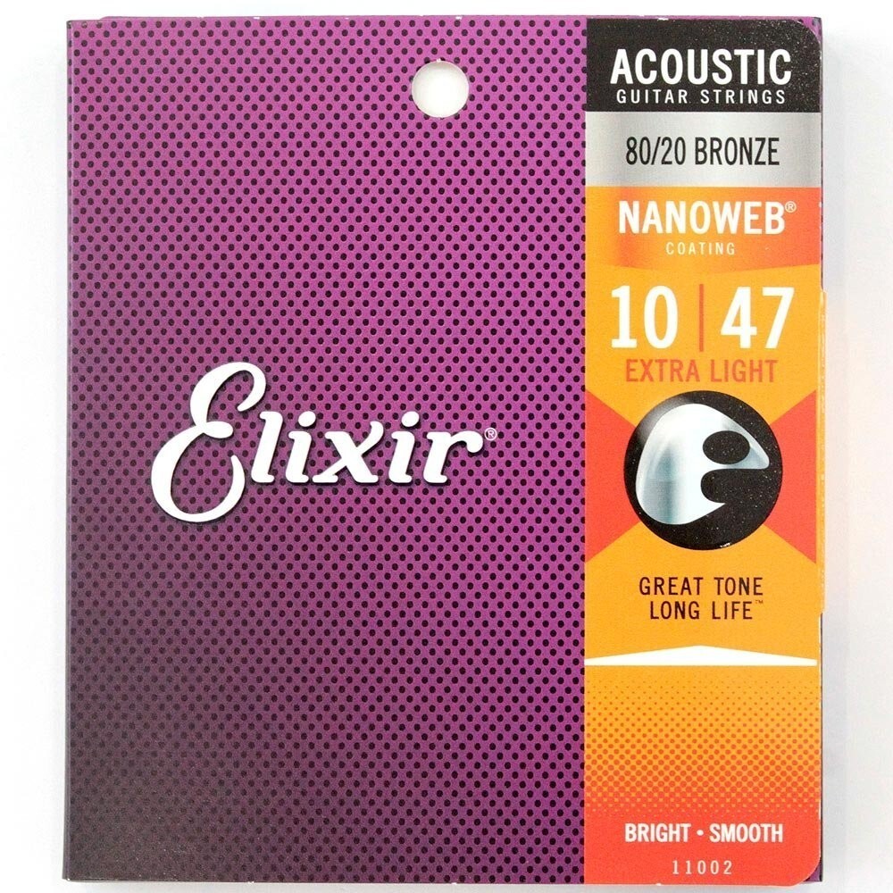 > 2個セットElixir エリクサー アコースティックギター弦 NANOWEB 80/20ブロンズ Extra Light .010-.047 #11002