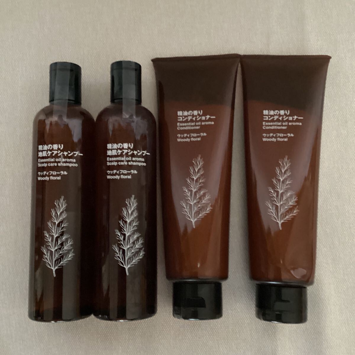 > 廃盤 計4点 無印良品 ウッディフローラル精油の香り地肌のケアシャンプー2本と精油の香りコンディショナー2本 最終出品