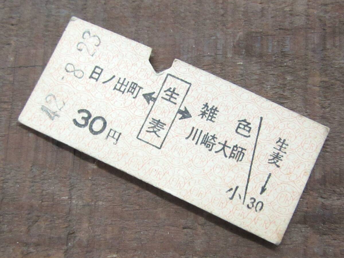 - 切符 B型硬券 昭和42年 生麦~30円 表矢印からの1駅ゆき 日ノ出町 雑色 川崎大師 生麦駅発行 京浜急行電鉄 京急 レトロ 33