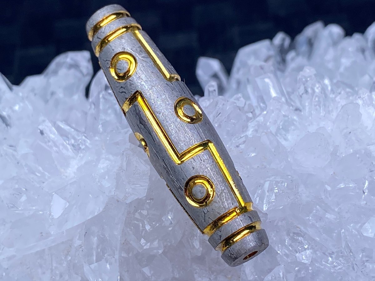 - 即決 0618k841 新入荷★【金線入り・ギベオン九眼天珠】★ 45x11mm(新品)