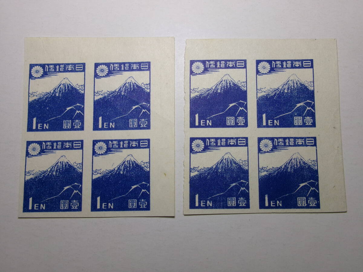 - 1次新昭和切手 北斎の富士 1円 タイプ1 白紙と灰白紙 田型2枚 未使用 黒-A