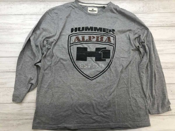 - ハマー HUMMER アメカジ ストリート ビッグロゴ 掠れプリント 長袖Tシャツ ロンT メンズ コットン混合 大きいサイズ 5L グレー