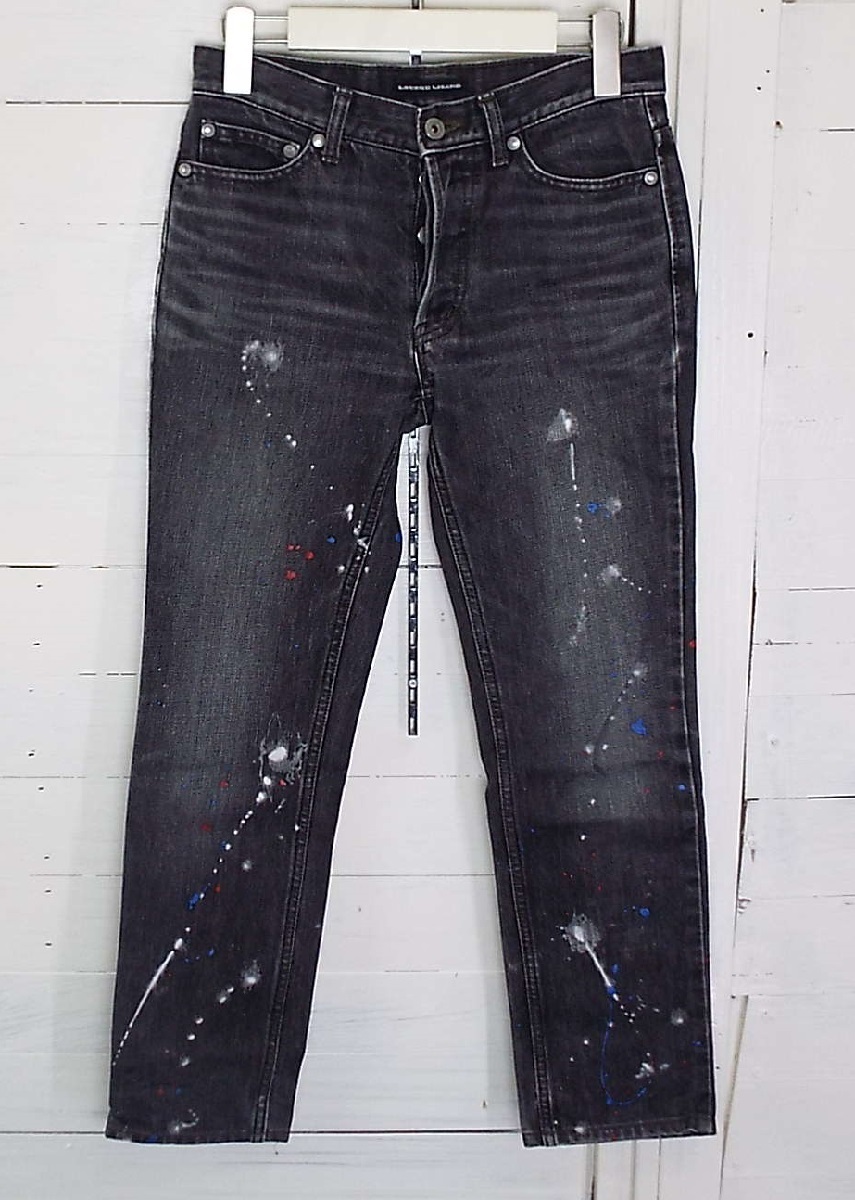 > T2282〇LOUNGE LIZARD(ラウンジリザード)ブラックデニム ジーンズ ペンキ加工 ボタンフライ サイズ1