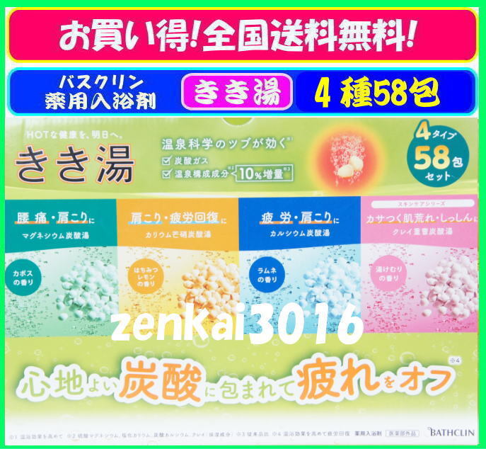 - \新品即納/★バスクリン♪きき湯♪4種類58包★疲れをお風呂でメンテナンス♪今日も一日お疲れ様です♪!!!