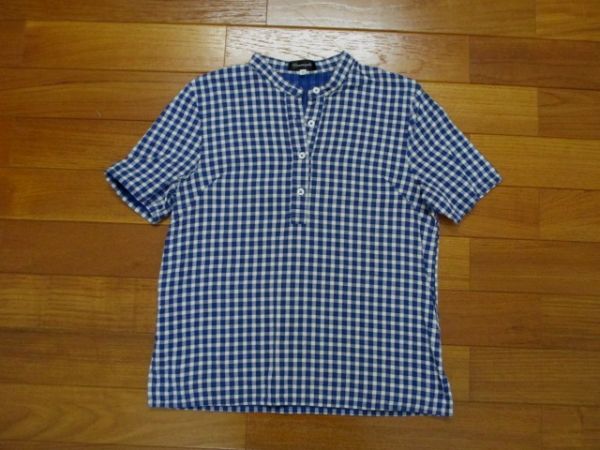 - ★スタンドカラー★ 綿素材 ダブルガーゼ 半そでシャツ 9R チェック