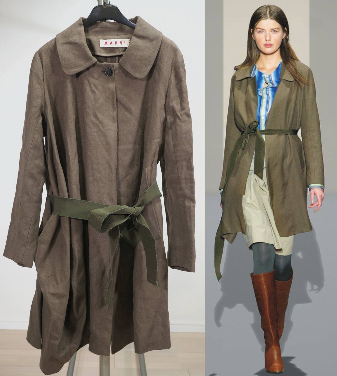 - ヴィンテージ05AWアーカイブ marni マルニ リボンベルトリネン混コート38 Italy製