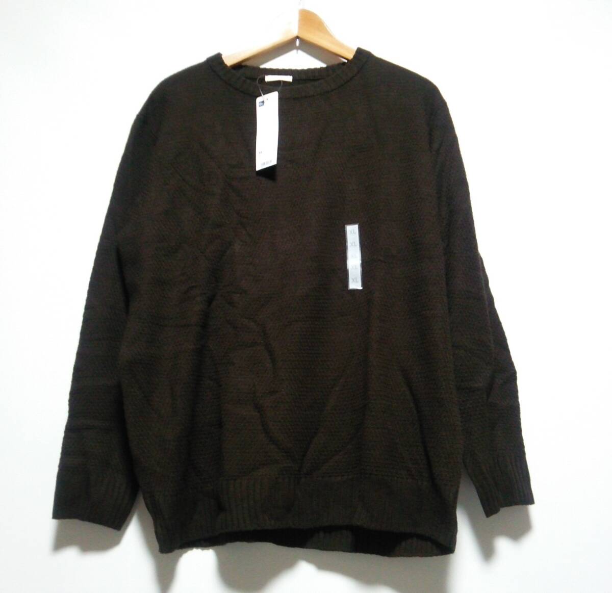 > 新品 タグ付 GU ジーユー 秋冬 タッククルーネックセーター ニット トレーナー ブルゾン ダークブラウン メンズXLサイズ