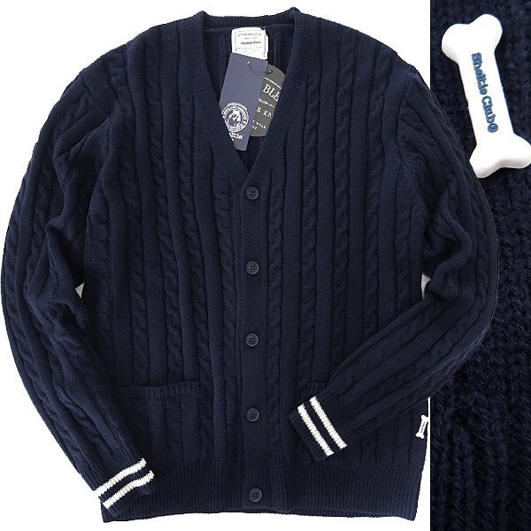 - 新品 シェルティークラブ ケーブル ニット カーディガン L 紺 【SH444340_79_L】 秋冬 Sheltie Club ウール混 洗える ウォッシャブル