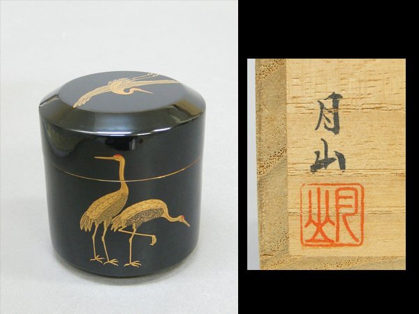- 【心庵】輪島塗 月山 鶴蒔絵/雪吹棗 内梨地 棗 共箱 茶道具 B035