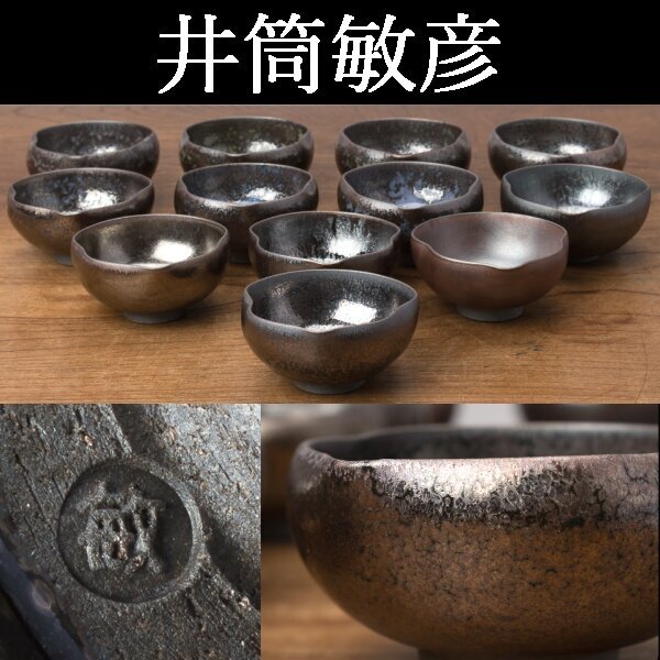 > 【千h0440】井筒敏彦 小鉢 12客 幅約8-9cm 箱無 煌彩天目 玄耀天目 向付 天目 天目碗 曜変天目 窯変天目