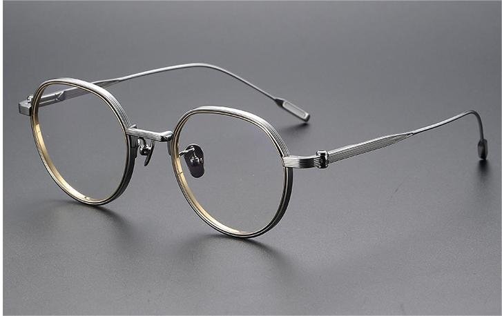 - 送料無料★高級メガネ★フルリムメガネ メガネフレーム 金属 チタン レンズ交換可能 伊達メガネ 男女兼用 丸メガネ