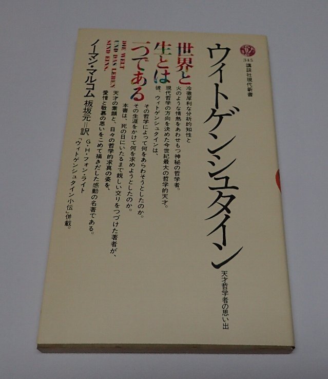 ●「ウィトゲンシュタイン 天才哲学者の思い出」 ノーマン・マルコム 板坂元 講談社現代新書