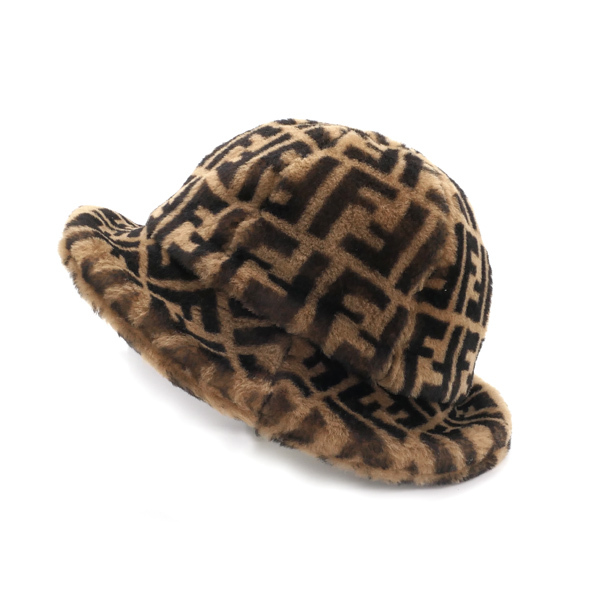 - FENDI ハット 帽子 ズッカ柄 FXQ632 A401 Mサイズ ムートン ファー pelliccia フェンディ 美品 質屋 神戸つじの 250372