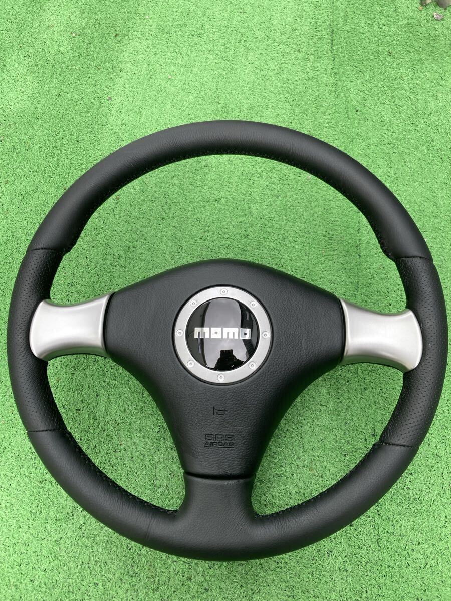 - 【インフレーターなし】超美品 ダイハツ 純正OP MOMO モモ L350S タント カスタム レザー ステアリング ハンドル ホイール GS120-00890