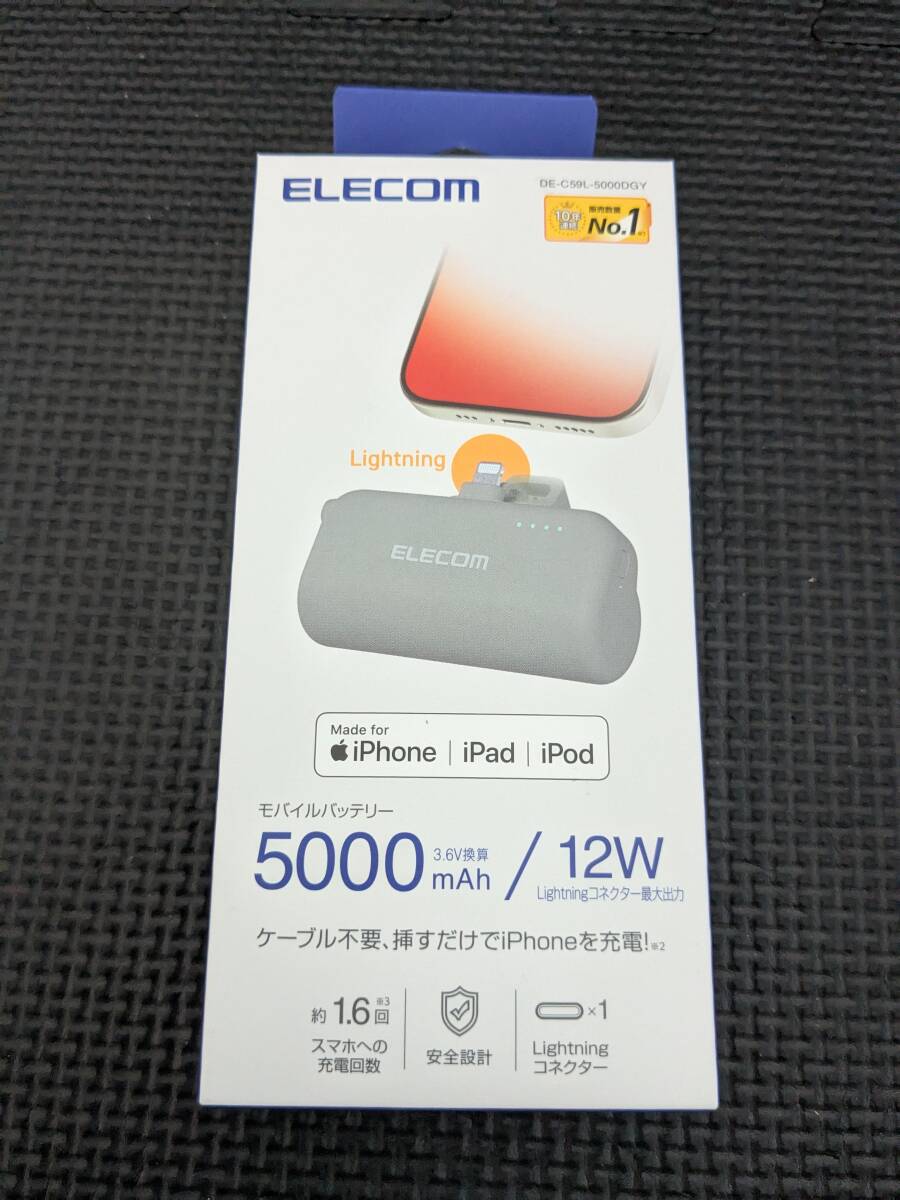 - ◎0709u2921 エレコム モバイルバッテリー 12W 5000mAh Lightning 直挿し Type-Cケーブル付属 ピンク DE-C59L-5000DGY