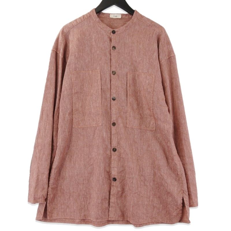 > 未使用 Cale カル WOOL LINEN LIGHT GARMENT DYE COLLARLESS SHIRT C251F05B01 ウール リネン レッド 5 タグ付き 71013665