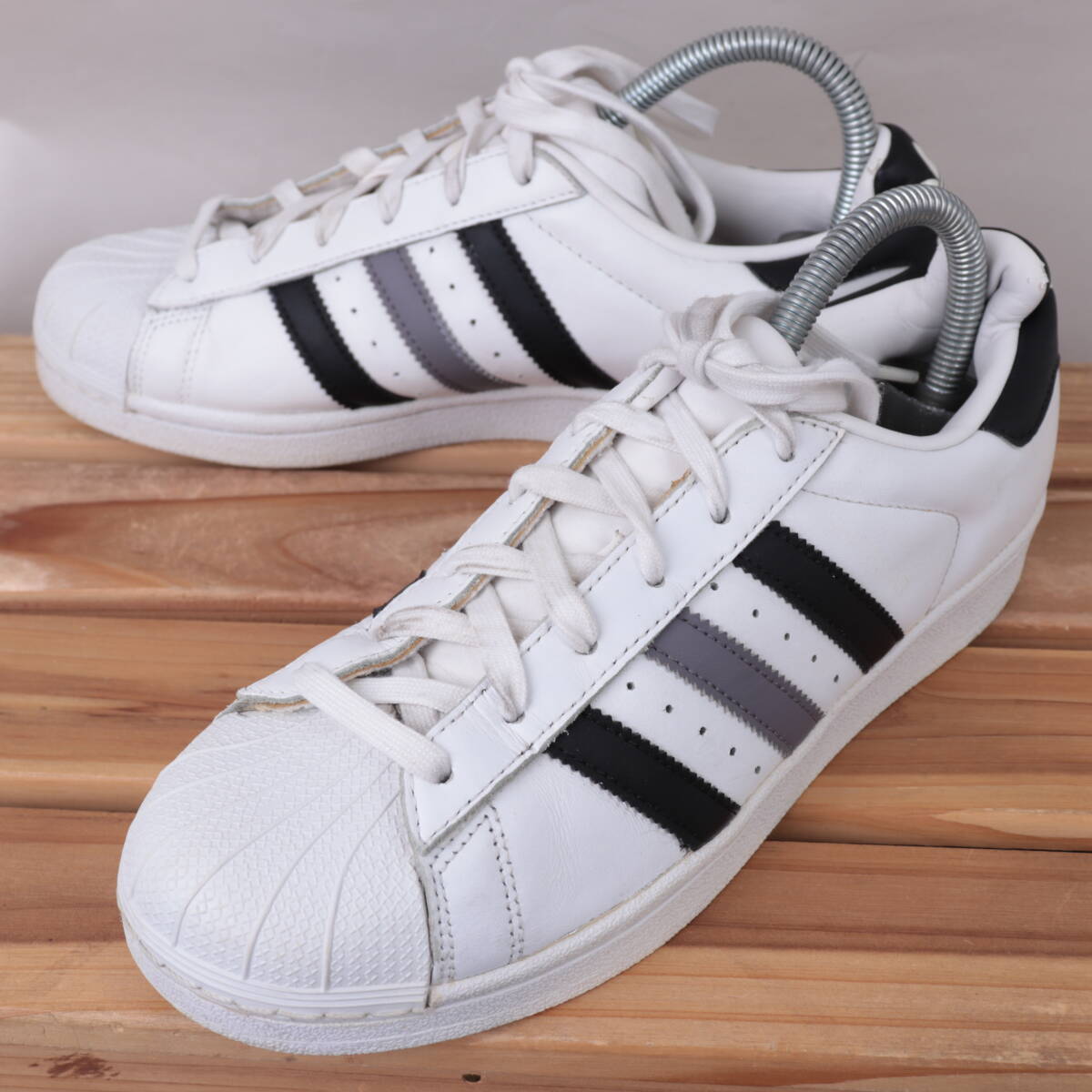 > z2302 アディダス スーパースター US7 25.0cm/白 ホワイト 黒 グレー adidas SUPERSTAR メンズ ユニセックス スニーカー 中古
