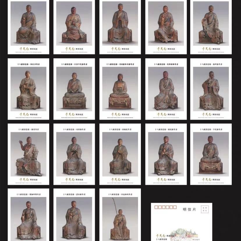 - 送料無料 中国ハガキ ポストカード 河南省洛陽白馬寺十八羅漢記念ハガキ 18枚セット 十八羅漢彫刻 美品 コレクション 郵便発送 ZH1683