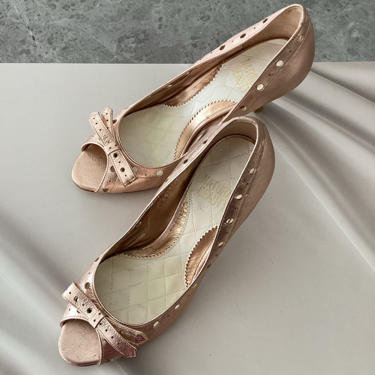 > ナチュラルビューティー メタリックピンク オープントゥパンプス