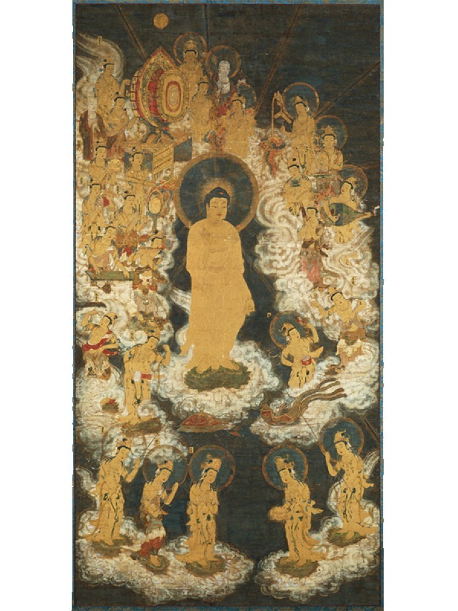 - 阿弥陀仏接引図 鎌倉 仏像 阿弥陀仏絹布 絹本 釈迦 東洋画 中堂画 掛け物 未表装 zhzx106