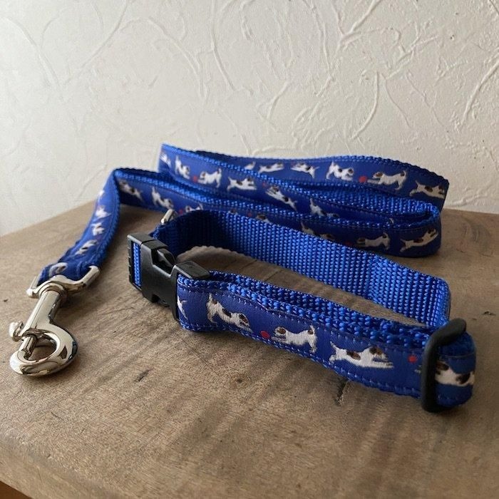 - ジャックラッセルテリア 首輪&リードのセット・ブルー アメリカ製