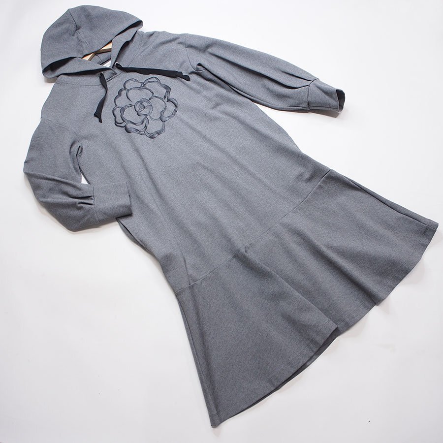 - インゲボルグ 杢グレー カメリアプリント フード付 ストレッチ ワンピース/フリーサイズ/日本製/J5A72