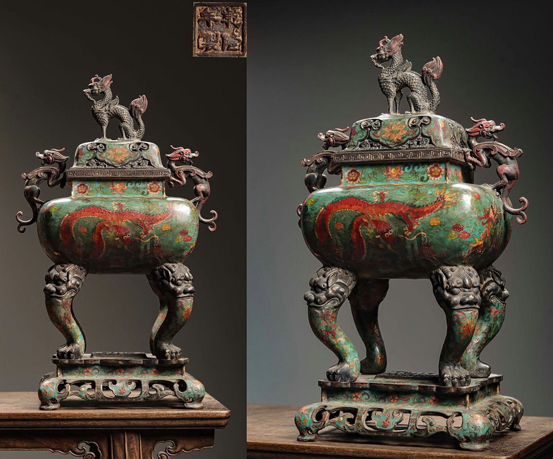 - ◆羽彰・古美術◆Y731清時代 景泰藍金絲琺瑯香薫炉 銅製 細密細工★古置物★古賞物★古擺件★蒐集家放出★唐物
