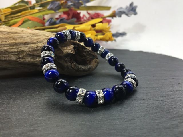 > パワーストーン ブレスレット ブルータイガーアイ (ロンデル:シルバー) 8mm 開運 浄化 金運 仕事運 効果 レディース ブルー