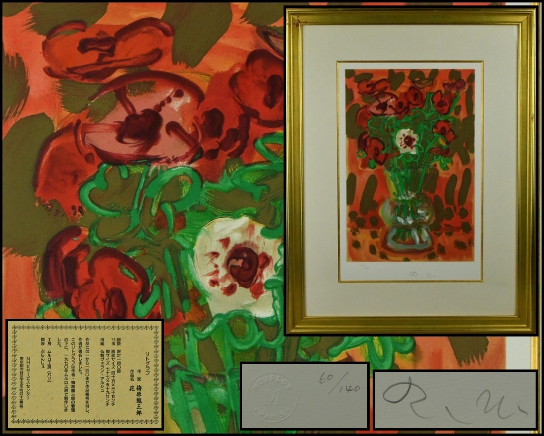 - 【ACT】限定140部【梅原龍三郎】リトグラフ『花』60/140 風景画 壁飾 額装 高さ76.9cm A7-826-80