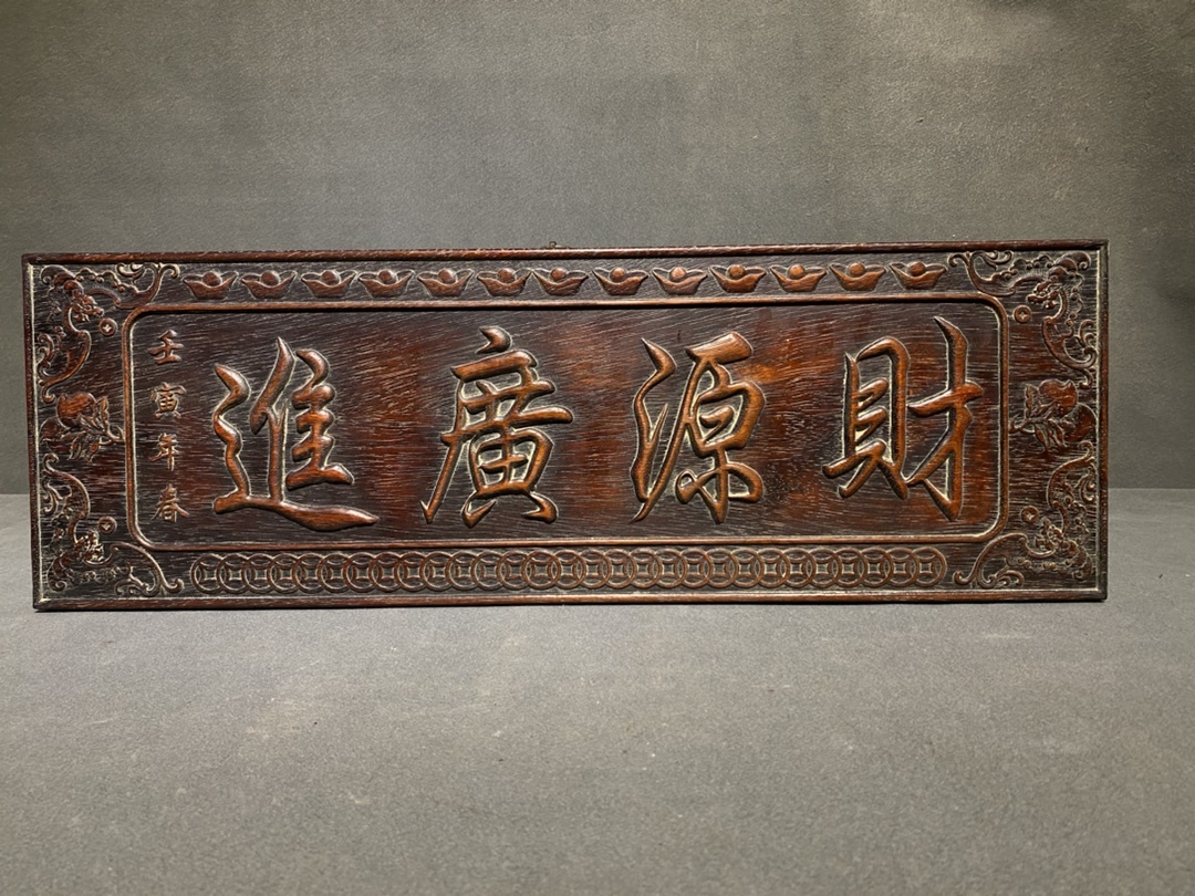 > 早期收集 旧藏 古紫檀木彫 財源廣進 壁挂 墻挂 中堂挂屏 置物 賞物 時代物 古董品 骨董 旧家蔵出し 唐物 中国古玩 古美術品