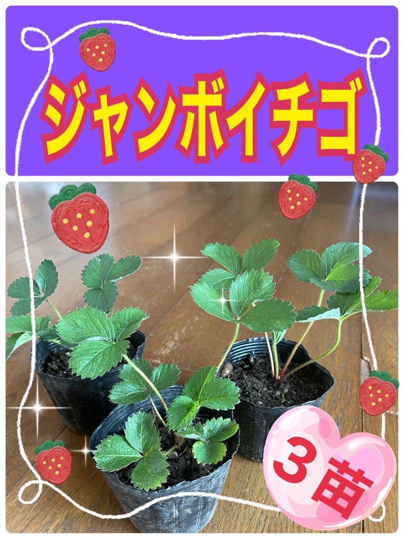 【抜き苗】ジャンボいちご<3苗> 抜き苗3株のお渡しです。 画像4.5は昨年我が家で素人が家庭菜園で収穫した物になります。ジャンボとありますが、我が家であまり手もかけず脇芽や間引きもしない為特段大きなものではなく通常の大きさに育ちました。 お渡しするものは、現在花も実もついておりません。栽培は素人であまり知識がありません。 根はしっかりしていると思いますが、必ず成長するという保証がありません。 お渡しはご購入いただきましたら、画像2.3と同等の物(当方の主観ですが状態の良いもの)を堀上げ根元を保湿しラップを巻いた簡単な梱包での発送です。 撮影時とご購入時にタイムラグがございます。日々成長しておりますので葉が枯れてしまったり虫食いが有ったりすることもあります。 現状を知りたい場合はコメント欄よりご一報くださいませ。 生き物ですので万が一到着時枯れてしまっても再送、返金致しかねないことをご了承下さい。 他多数出品中♪同梱可能