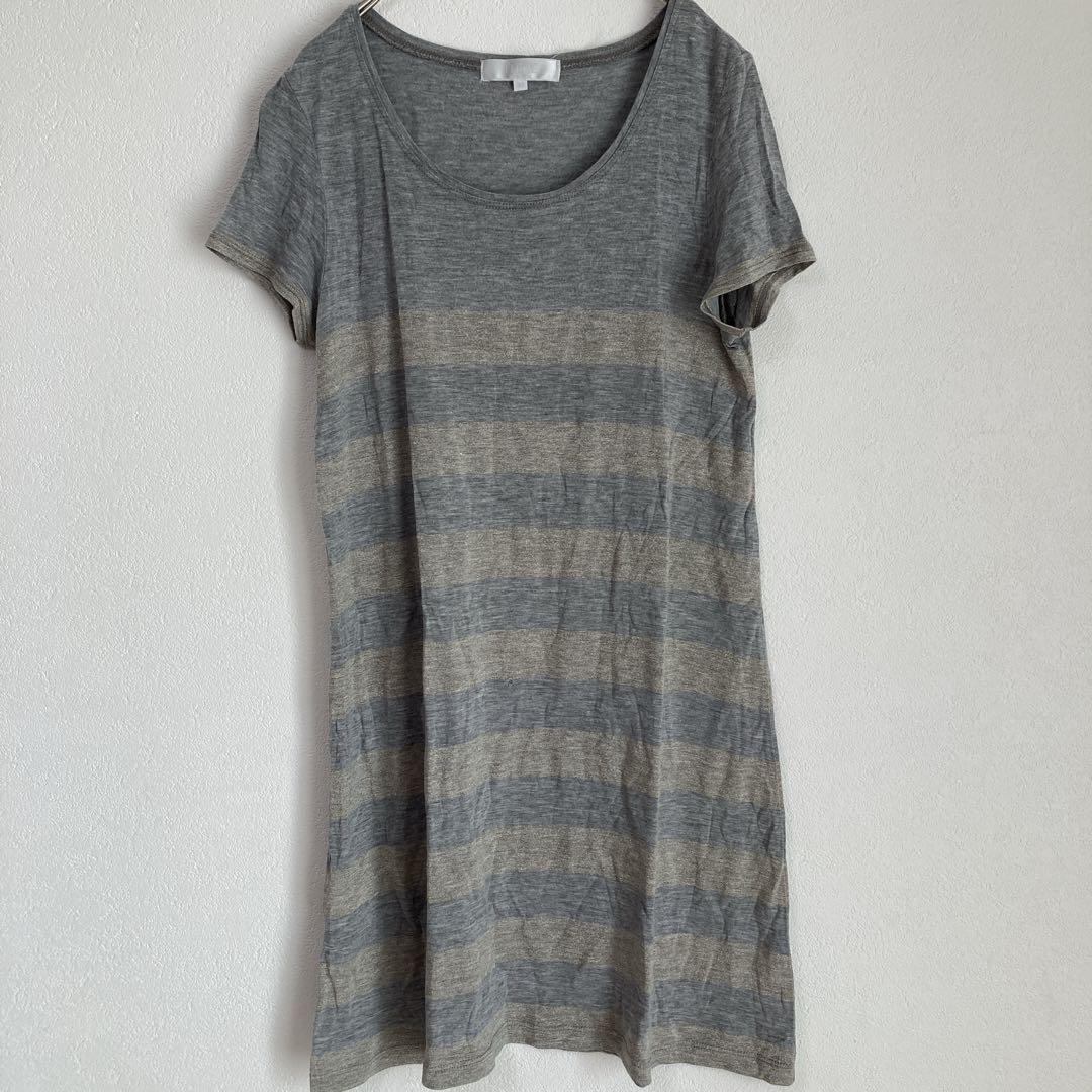 - 【自由区】ジユウク(38)チュニック*ボーダー*Uネック*フレア*薄手*グレー